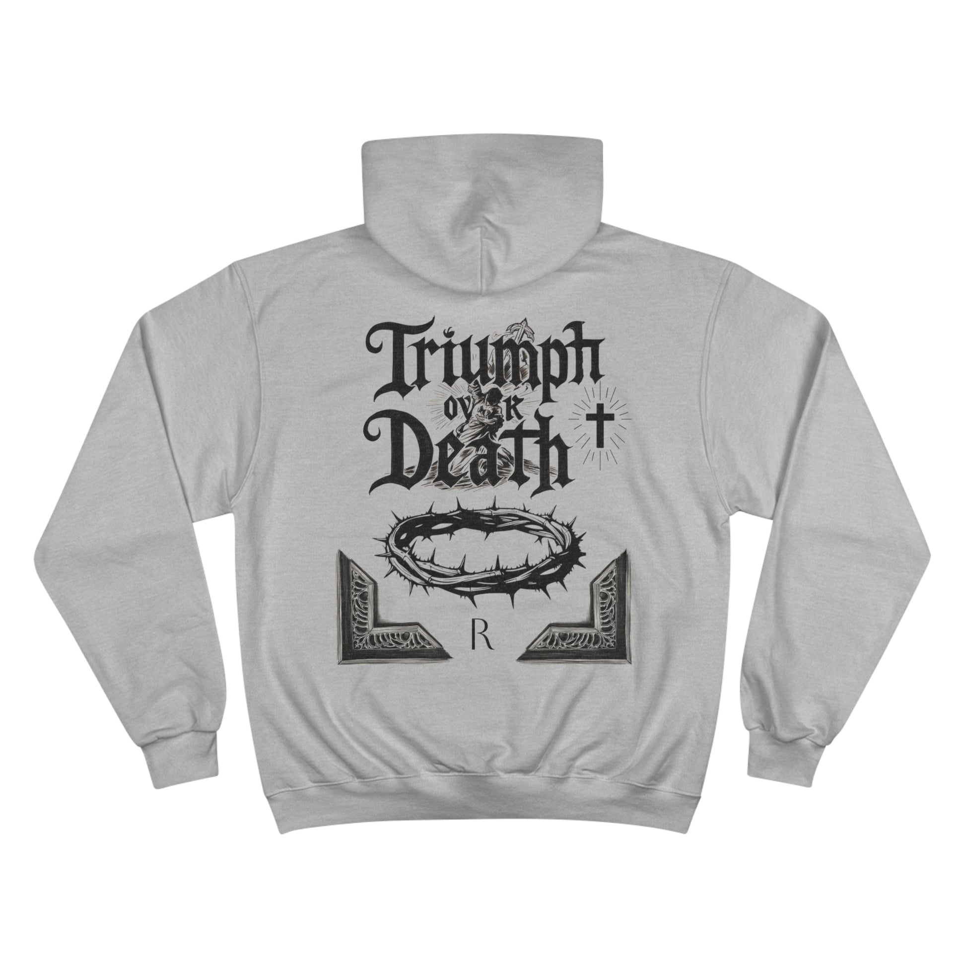 -Custom Champion hoodie made with 50% cotton, 50% polyester.